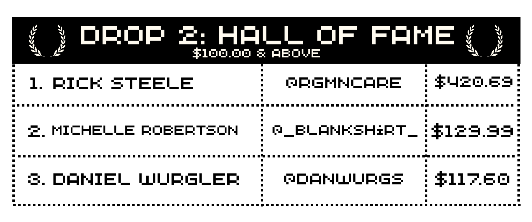 this is where legends live. the blankshirt hall of fame. the top blankshirt purchasers from drops gone by.
